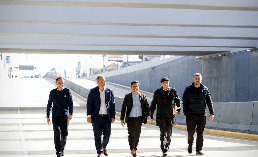 El gobernador de la provincia de Buenos Aires, Axel Kicillof, y el intendente de Almirante Brown, Mariano Cascallares, encabezaron este domingo el acto de inauguración del viaducto «Papa Francisco» en la rotonda Los Pinos de la Ruta Provincial N°4, en la localidad de Burzaco. Fue junto al ministro de Infraestructura y Servicios Públicos, Gabriel Katopodis; el administrador general de Vialidad, Roberto Caggiano, e intendentes de la región.